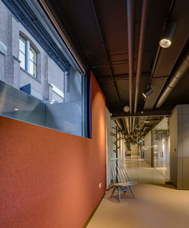 Verbouwing van de kantoorkelder van VITRA NL tot een kantoortuin met vergaderruimte en een kantine, die tegelijkertijd als showroom dienst doen.